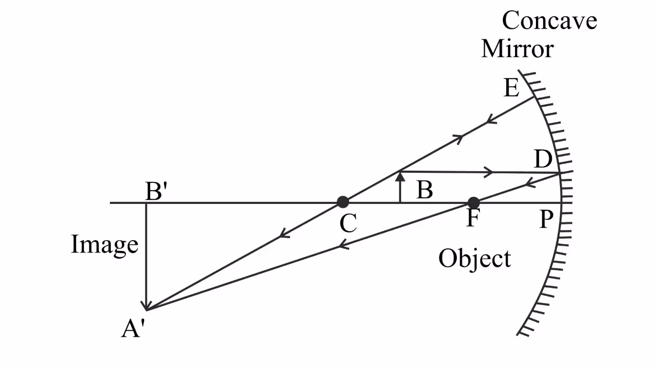 Q3. explain ray diagrams for image formation by concave mirror for (i) object at infinity, (ii) object at focus.