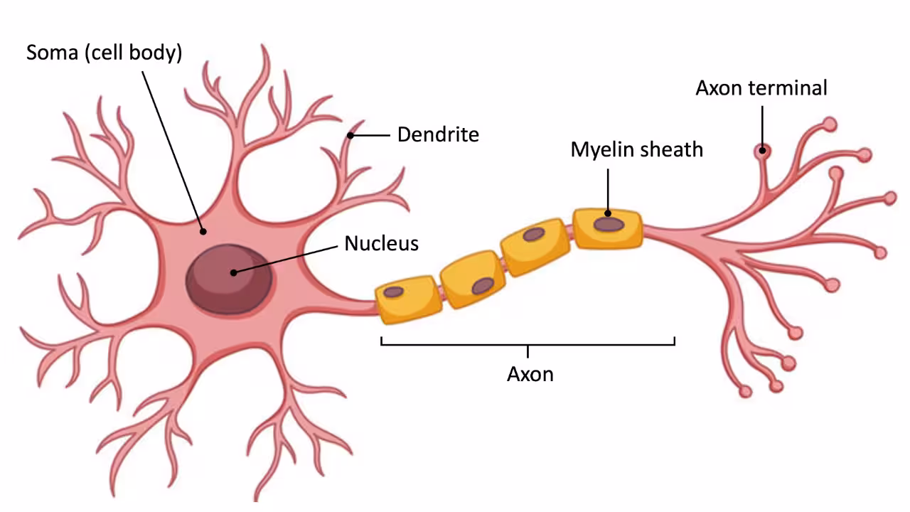 Draw labelled diagrams of the following: (a) Neuron (b) Brain