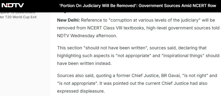 In a press release dated 25 February 2026, the National Council of Educational Research and Training clarified that there was no intent to demean the authority of any constitutional body and that it holds judiciary in highest esteem.