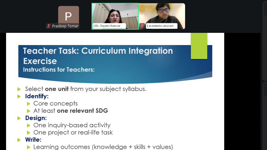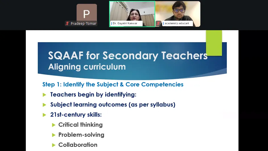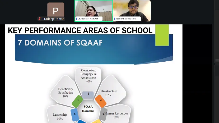 Educart organized a national CPD Webinar on Building a Clear Understanding of SQAAF that brought teachers and school leaders together . The session was led by Dr. Gayatri Kanwar, Deputy District Training Coordinator for CBSE, with Mr. Nishant Lakra moderating the discussion. The webinar focused on helping educators understand and implement the School Quality Assessment and Assurance Framework, which is a big part of how schools are being evaluated under the new education policies.
