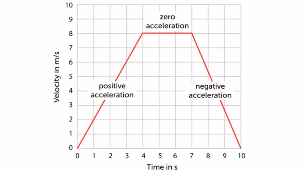 - Straight sloped line: Uniform acceleration