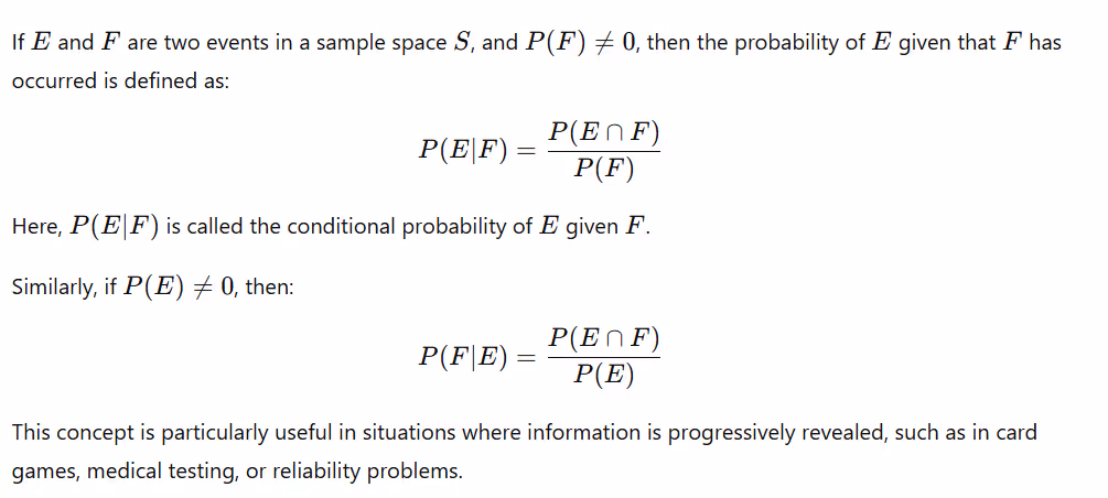 While in Class 11 we studied basic probability concepts, in Class 12 the focus is on more advanced aspects such as conditional probability, independence of events, Bayesβ theorem and random variables.Β