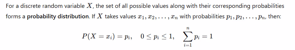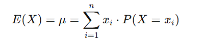 The mean (or expected value) of a discrete random variable X is the average value it takes, weighted by the probabilities. It is defined as: