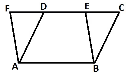 If parallelograms ABCD and ABEF stand on the same base AB and both have their opposite sides on the same parallel line, then ⇒ ar(ABCD) = ar(ABEF).