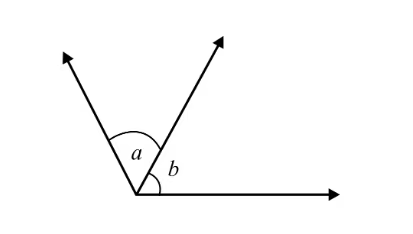 - Adjacent Angles: Two angles are adjacent if they have a common arm, a common vertex and do not overlap. For example, a and b are adjacent angles below.