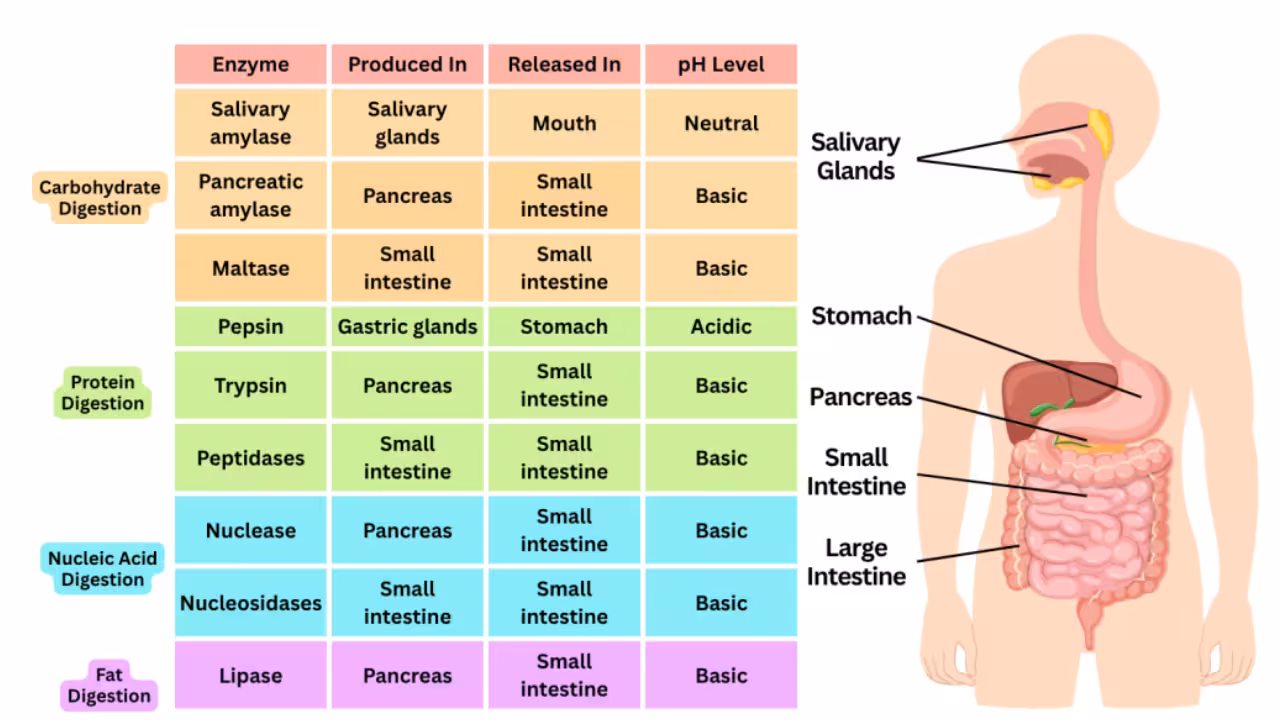 Every step in digestion depends on these enzymes and secretions - from salivary amylase in the mouth to pancreatic lipase in the small bowel intestine. Together, they ensure food is broken down, absorbed, and ready to fuel your body.